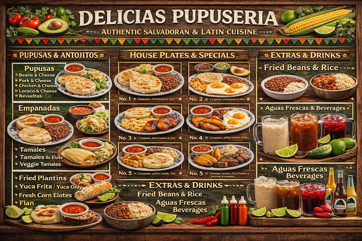 Our commitment to authenticity, homemade flavor, and quality in every dish makes us the best choice for anyone looking to enjoy true Salvadoran cuisine. From our handmade pupusas to traditional favorites like fried yuca, tamales, and chicken soup, everything is prepared with fresh ingredients and a love for our roots. Choose Delicias Pupusería because here, you don’t just eat — you experience tradition.