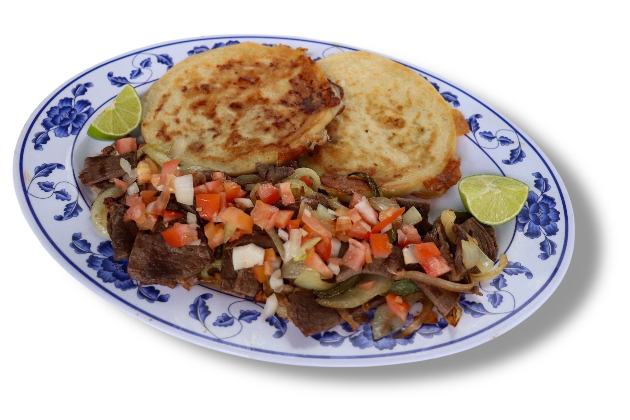 Pupusa of your choice accompanied with steak fajitas